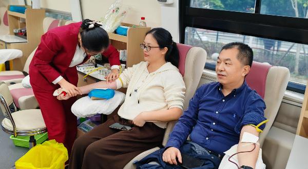“从大学时代起,我就坚持定期献血,既帮助了他人,对自己的健康也有好处,大家放心参与!”建材控股党总支书记、董事长陈伟挽起衣袖,熟练地配合医护人员采血。作为献血“老将”,他的分享给现场不少初次献血的同事吃下了“定心丸”。